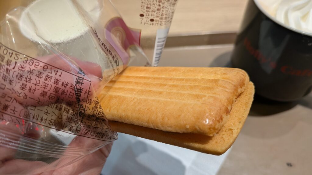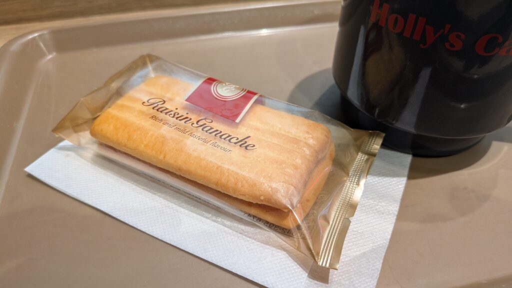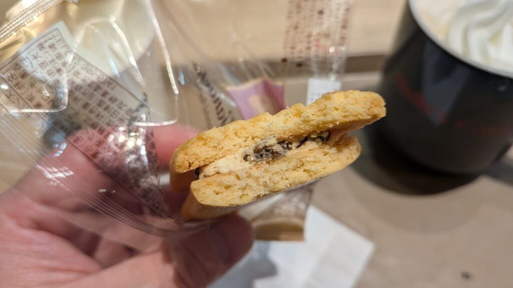 ビスケットみたいなモノ2枚の中にバタークリームと洋酒に浸されたレーズンでしょうか・・・が挟まれています。
