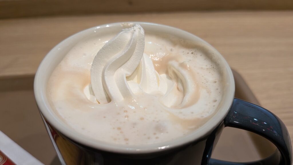 で、先日ウィンナーコーヒーhotに続いてホイップクリームの乗ったカフェオーレのこの飲み物をいただきました。