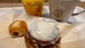 ジャーマンドッグはこれまで何度も食べましたが。45周年という事でソーセージがビッグになったようです・・・という事なんですが。最後にノーマルのジャーマンドッグを食べたのがだいぶ前なので、受け取った時に「これビッグ?」と思ってしまいました。