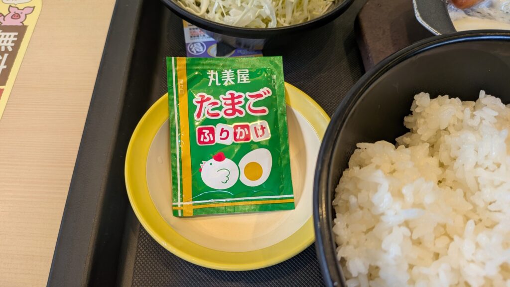 得朝ソーセージエッグ定食(小鉢無し) 490円+無料クーポンふりかけ