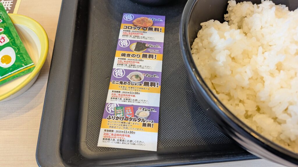 ご飯大盛りでも十分食べられる定食です。本日も無料紙クーポンが付いてました。また色が変わったんですね。