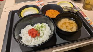 松のやの明太ご飯定食(小鉢無し)豚汁セット ご飯大盛り 480円です。先日、通常のみそ汁バージョンの明太ご飯定食を食べましたが。本日は豚汁セットを食べてみました。まぁ、味は特に変わりませんが・・・
